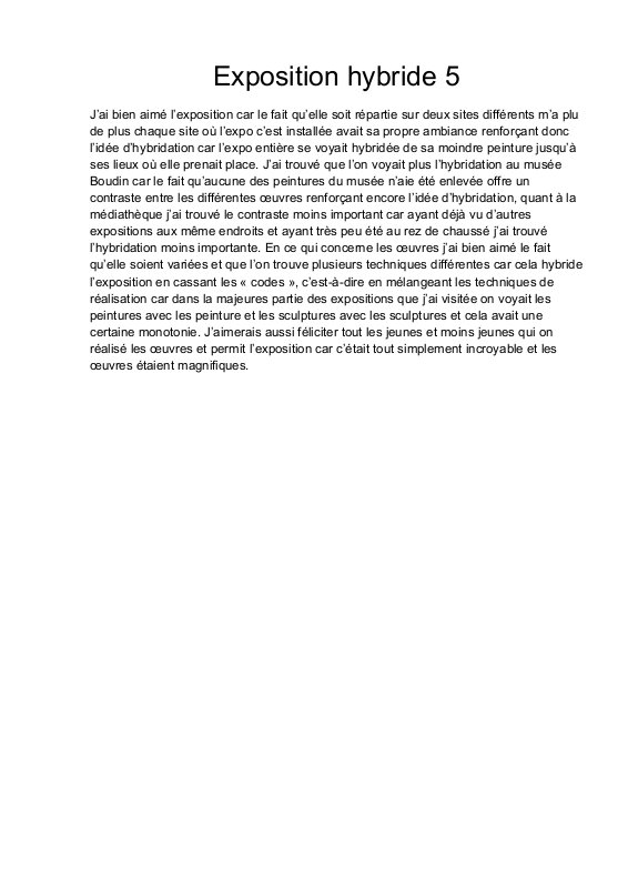 Je me suis davantage intéressé aux œuvres en elles-mêmes lors de l’emballage des œuvres, auquel j’ai participé. J’ai ainsi pu observer de plus près le travail de nombreux élèves. J’ai également pu les admirer lors du vernissage de l’exposition au musée Eugène Boudin et à la médiathèque de Honfleur. J’ai beaucoup apprécié le travail proposé par les élèves.