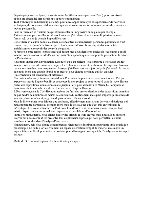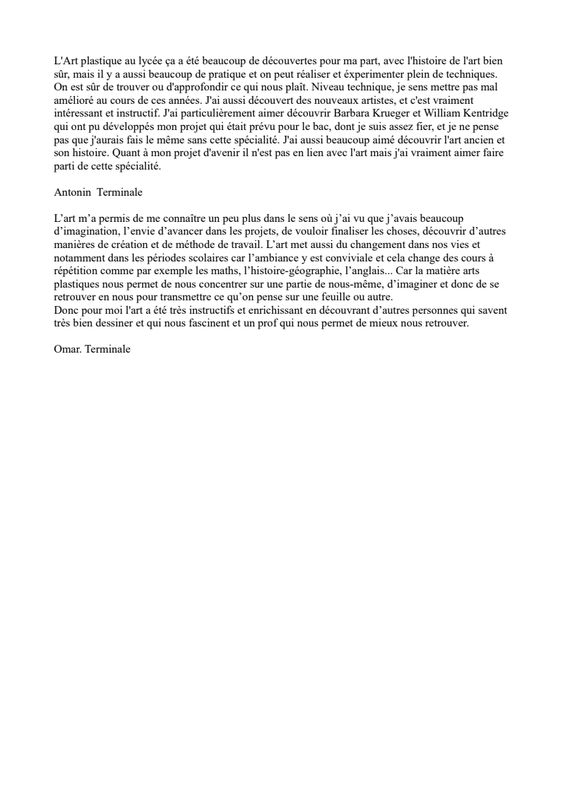 Les arts plastiques au lycée Albert Sorel Honfleur